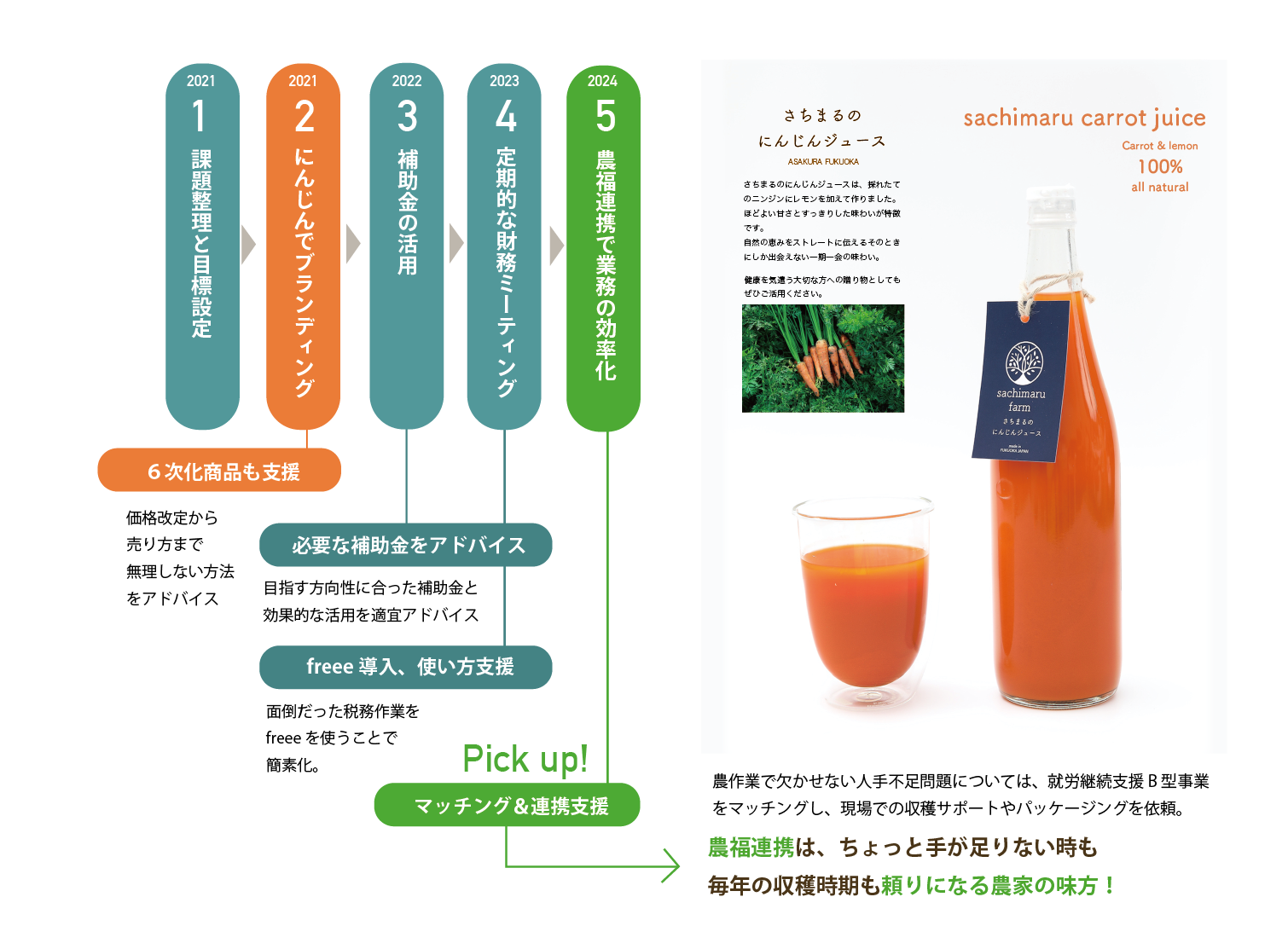 売上アップのための6次化商品を開発や、商談会対策までをサポート。